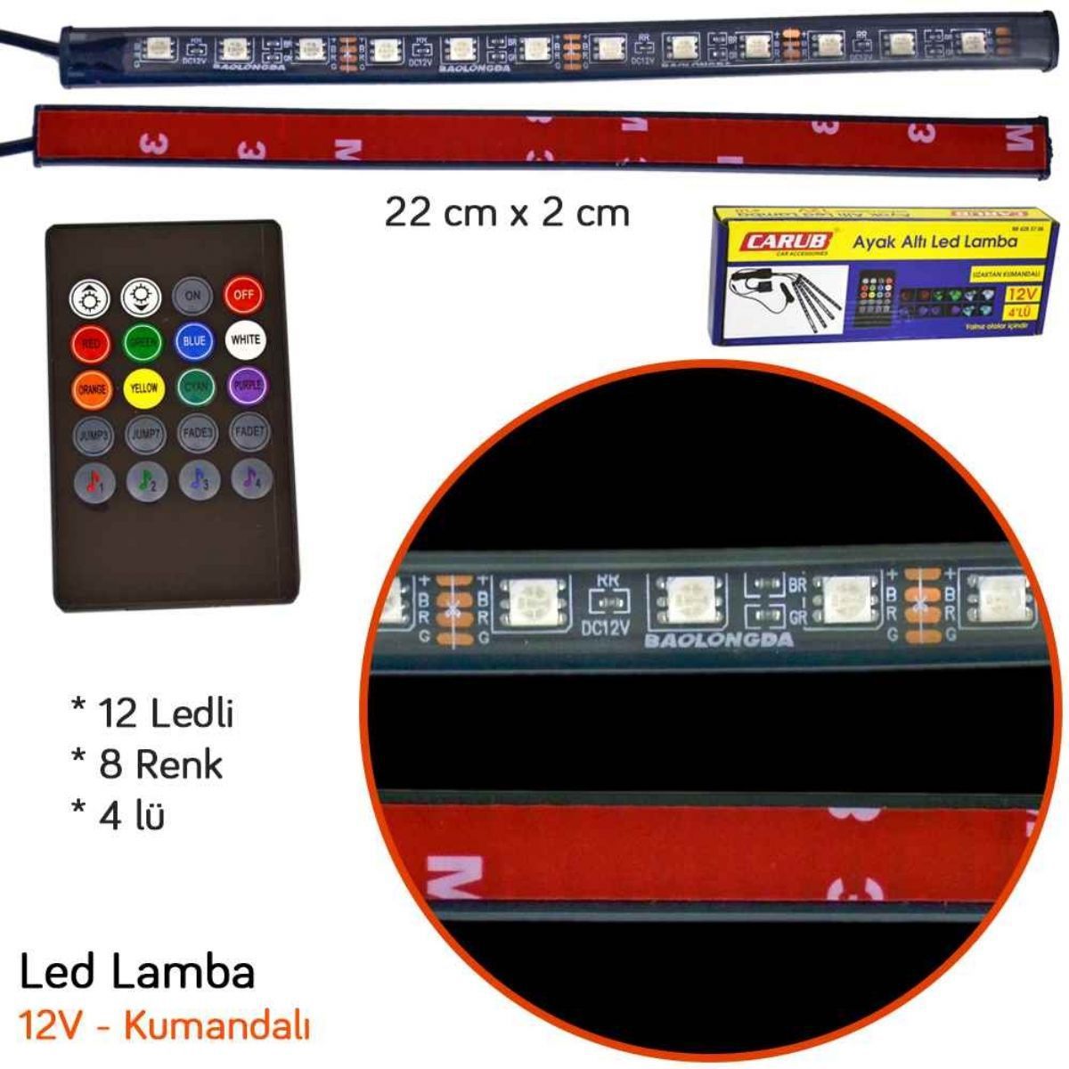 Ayak Altı Led Lamba Müziğe Duyarlı Kumandalı 4 lü 12V