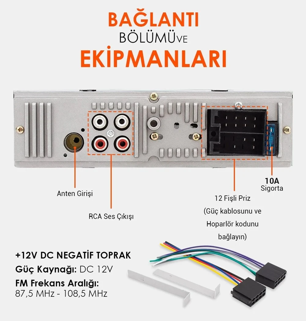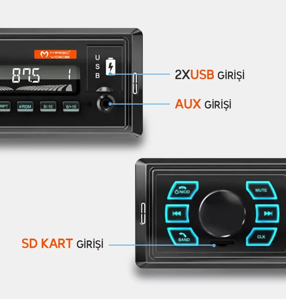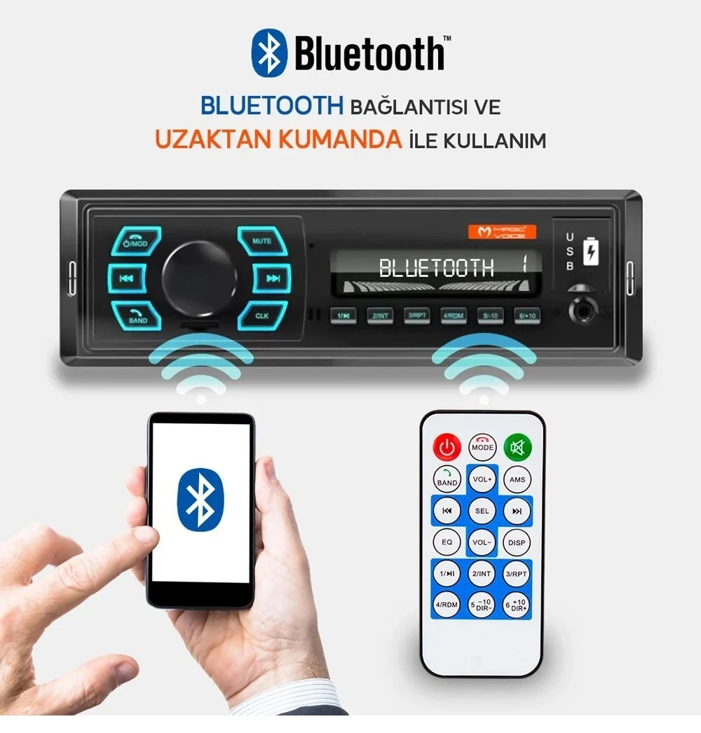 Carub Bluetooth Çift Usb-Sd-Fm-Aux Uzaktan Kumandalı Mekaniksiz Oto Teyp 4 X 60 Watt Ses Çıkışı