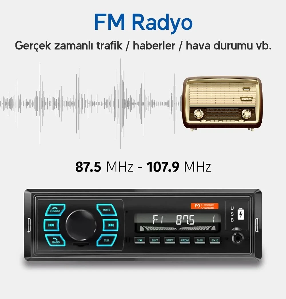 Carub Bluetooth Çift Usb-Sd-Fm-Aux Uzaktan Kumandalı Mekaniksiz Oto Teyp 4 X 60 Watt Ses Çıkışı